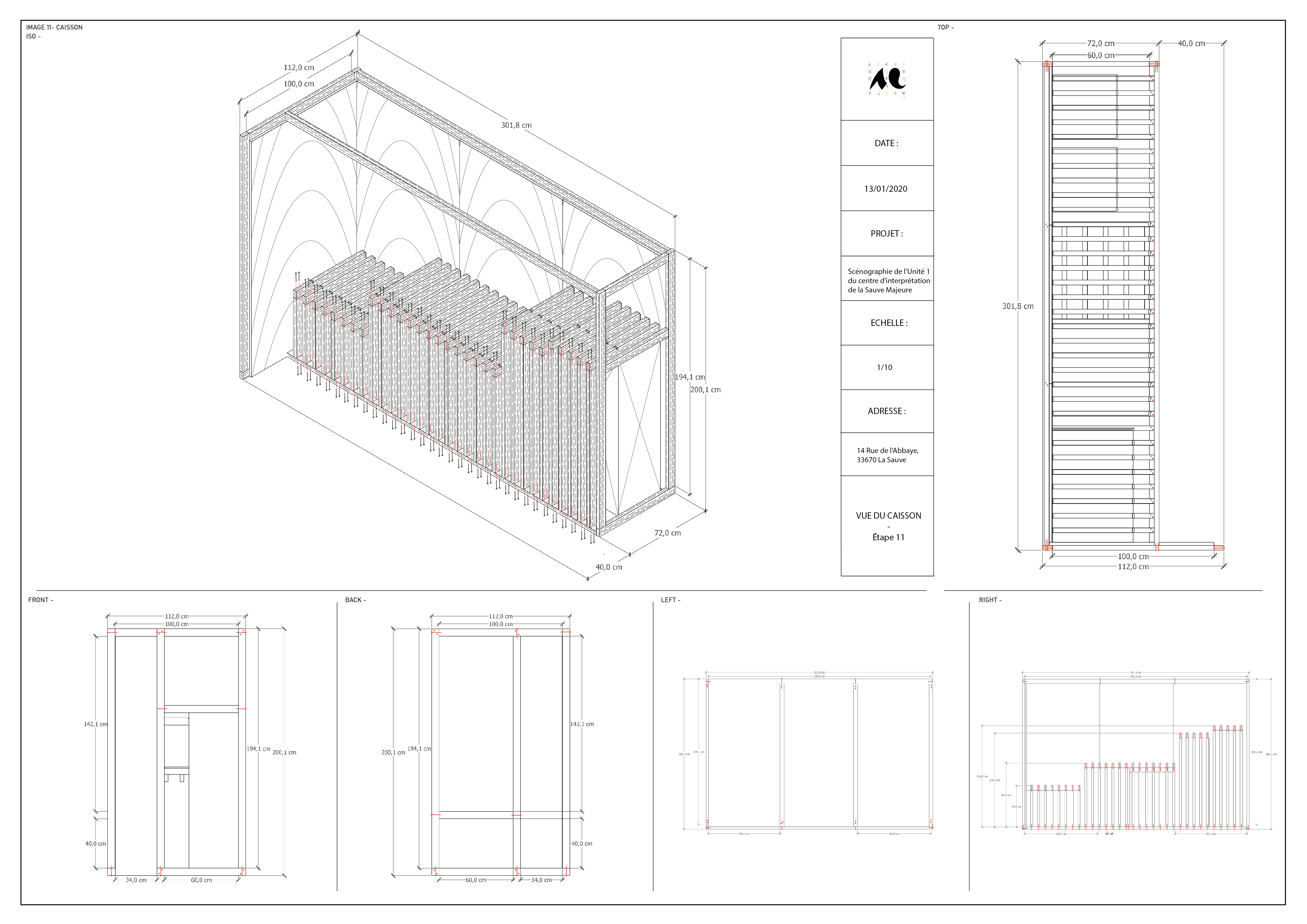 Au niveau du mobilier et des structures d’exposition : il s’agissait d’articuler les intentions formulées dans le cahier des charges avec des solutions pratiques et des réponses techniques efficaces et adaptables aux ressources matérielles du projet, dans un souci permanent de cohérence entre fond et forme, une exigence de faisabilité et de réversibilité.